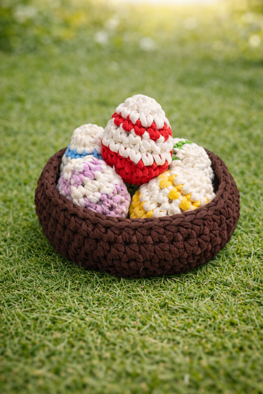 This extra-large Easter basket is perfect for spring décor, Easter gifts, festive table styling, and displaying crochet eggs or small treats. Its larger size makes it a charming statement piece while still being fun and approachable to make.